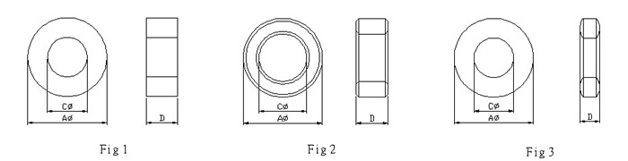 材质 形状 宽度(A¢) 內径(C¢) 长度(D)